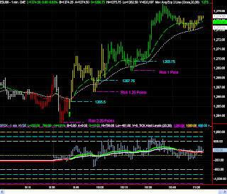 Yesterday, the market was bullish during this period due to Lehman news and the upcoming Bernanke speech. As the market bounced off the 38 Period EMA on the 630 tick chart, a good trade setup would have been an entry at 1284.5 with a stop at 1282.75, which was a risk of less than 2 points. The potential reward was close to 10 points, which could have been based on the up surge from 1277 to 1288 with a 50% correction to 1282.75. An example of assessing potential reward to risk.